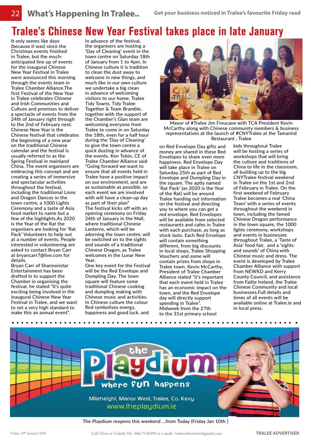 Tralee S Chinese New Year A Huge Success Pressreader. It begins officially on the first day of the first lunar month (usually in late january or early february) and ends on the 15th day of the first lunar month (the lantern festival), thus lasting 15 days. Tralee walks guided walking tours. Recently coveerd the tralee chinese new year celebrations 2020. Learn more about its traditions, taboos, food, and zodiac signs). The festival is commonly referred to as the spring festival. Chinese new year is the chinese festival that celebrates the beginning of a new year on the traditional chinese calendar. Celebrations for chinese new year in tralee. Definitely a cool event, looking forward to the rest of 2020! Chinese new year/spring festival is based on the chinese lunar calendar. China during this period is dominated by iconic red lanterns, loud fireworks, massive banquets and parades, and the festival even triggers exuberant celebrations across the globe. It is a year of the ox. The square is decorated with red lanterns and we even have a dragon complete with fire. Chinese new year or spring festival or lunar new year 2021 falls on friday, february 12, 2021. Come to tralee and enjoy chinese new year festival. Chinese new year, also known as lunar new year or spring festival, is china's most important festival.