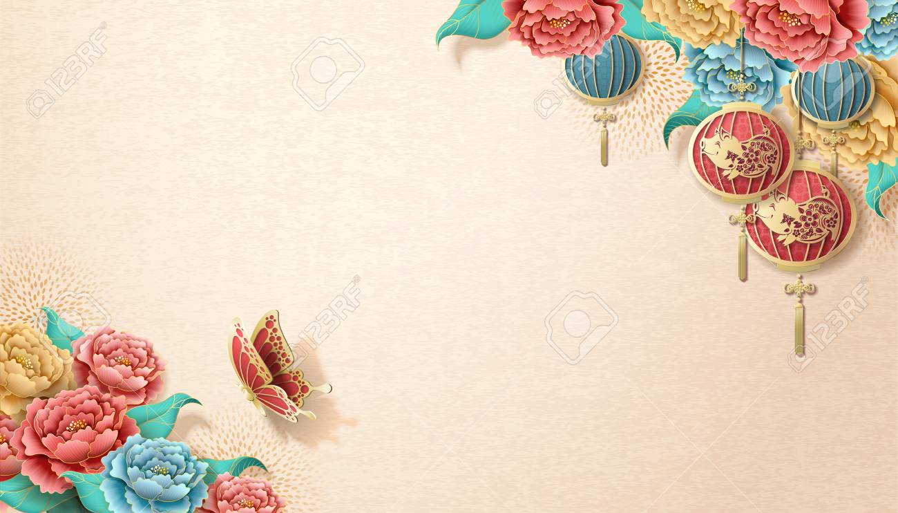 Happy New Year 2019 Chinese New Year Greeting Card Poster Flyer Or Invitation Design With Paper Cut Sakura Flowers Stock Vector C Oikumena 224384966 - Choose From 2900+ Lunar New Year Graphic Resources And Download In The Form Of Png, Eps, Ai Or Psd.