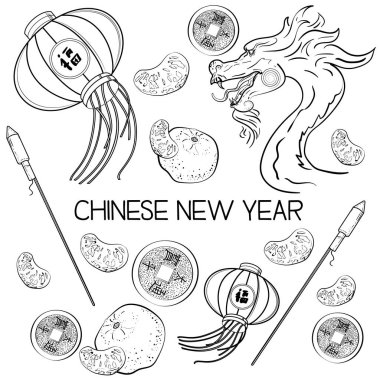 Traditional Chinese New Year Elements . Fierce Chinese New Year Template.